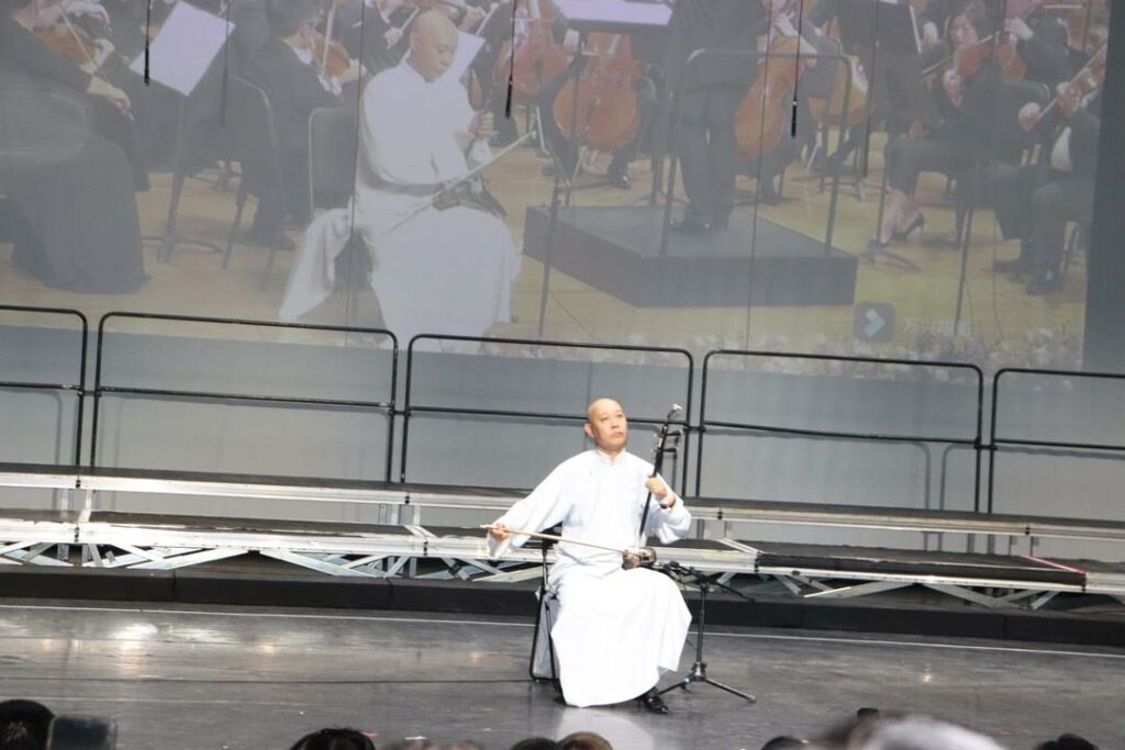 著名二胡演奏家、法国艺术与文学骑士勋章获得者果敢也在现场奏响《我的祖国》,以深情琴声表达对祖国的热爱。