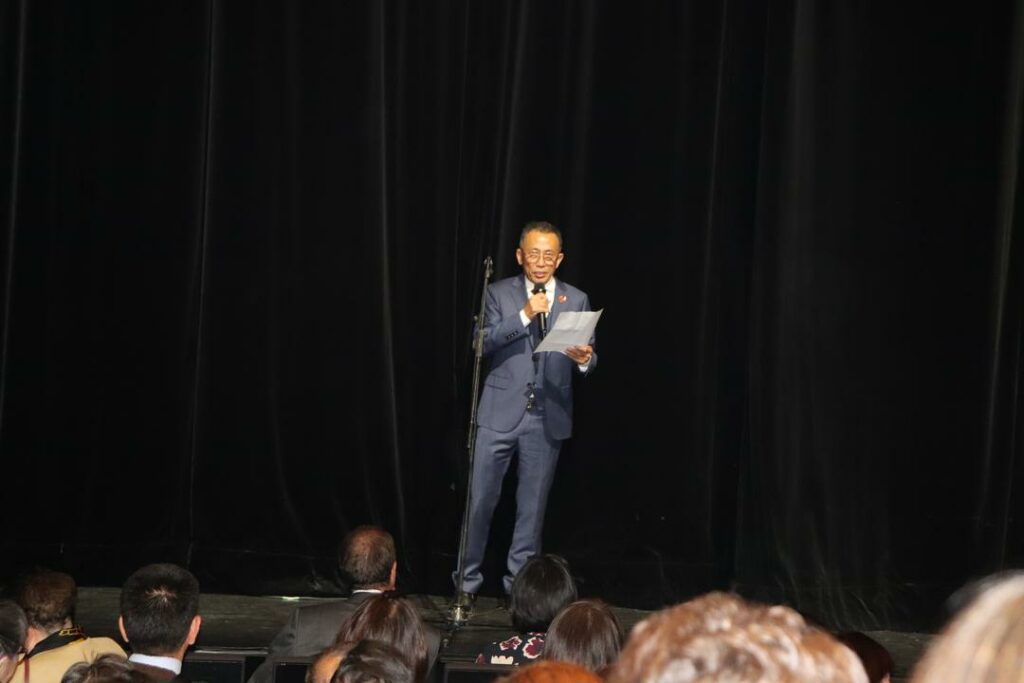 音乐会开幕前,法国法华工商联合会会长梁丽华首先致辞。他说:我谨代表主办方,向伟大的祖国致以最诚挚的国庆祝贺!也向今晚光临音乐会的使馆领导、侨领嘉宾和国际友人们表示衷心的感谢和最热烈的欢迎。七十六年来,新中国创造了举世瞩目的成就;八十年前,中国人民以巨大牺牲赢得了抗战胜利,为人类和平与正义作出了卓越贡献。今天我们在巴黎相聚,不仅是缅怀历史,更是携手同行,共创未来。