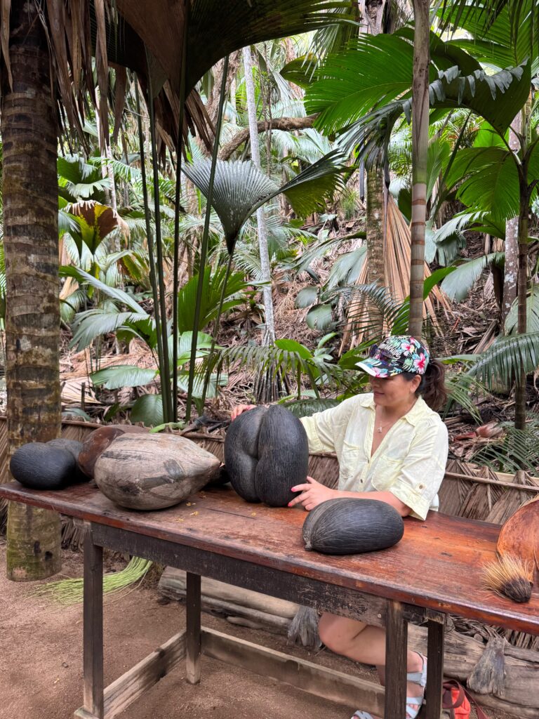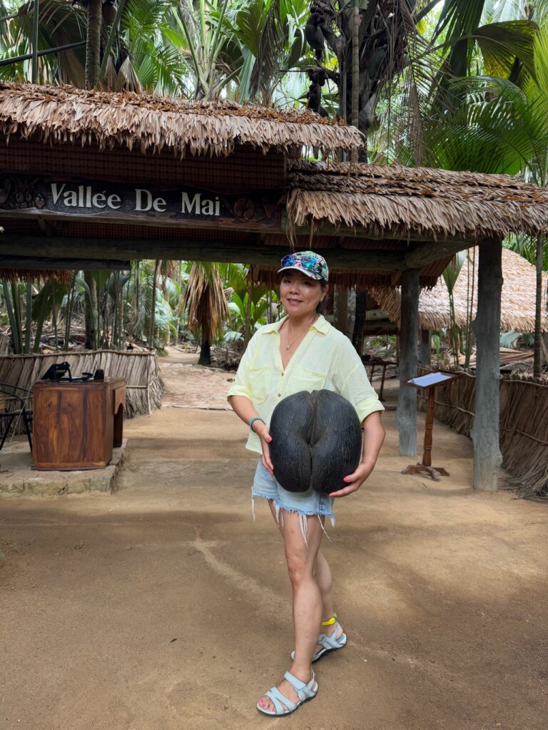 8月29日,座标仍在塞舌尔,今天我去Praslin岛上的五月谷看海椰子(Coco de Mer),它是世界上最大的植物种子,只在塞舌尔的普拉兰岛和居留斯岛自然生长。这可是塞舌尔的大熊猫。所以也是联合国教科文保护的世界遗产。这个抱起来特别沉,一个果实可达 15-30公斤,成熟要6-7年。走在丛林里,有时候会害怕从树上掉下来一颗!也惊叹枝桠的力量,居然可以撑起几百斤的重量!