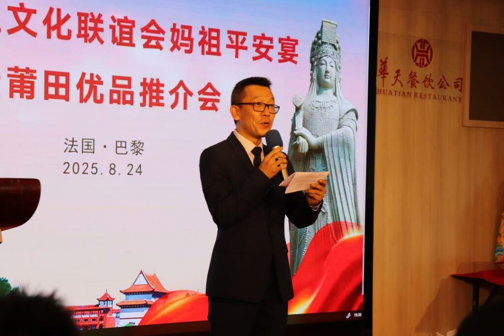 2025年8月24日,法国妈祖文化联谊会在巴黎举行湄洲妈祖分灵法国安座庆典。法国妈祖文化联谊会、中国湄洲妈祖祖庙董事会、意大利妈祖文化交流协会、西班牙妈祖文化董事会、西班牙福莆仙同乡会以及法国各地36家侨团齐聚一堂,共襄盛会,进一步增进华人群体的民间交流。